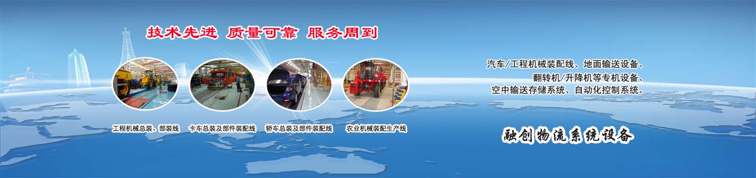 無錫市融創(chuàng)物流系統(tǒng)設備有限公司專業(yè)從事物流輸送設備、各類裝配流水線設備、各類生產(chǎn)非標專機設備和自動化控制系統(tǒng)的專業(yè)生產(chǎn)企業(yè)。廣泛應用于轎車、卡車、客車、各類工程機械、發(fā)動機、車橋、農(nóng)業(yè)機械、郵政、家電等行業(yè) ...... >> more >>